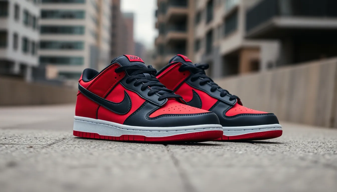 The design of the Nike Dunks in red and black stands out, showcasing a combination of rich aesthetics and functionality. These shoes leverage a striking contrast that captivates sneaker lovers and fashion enthusiasts alike.